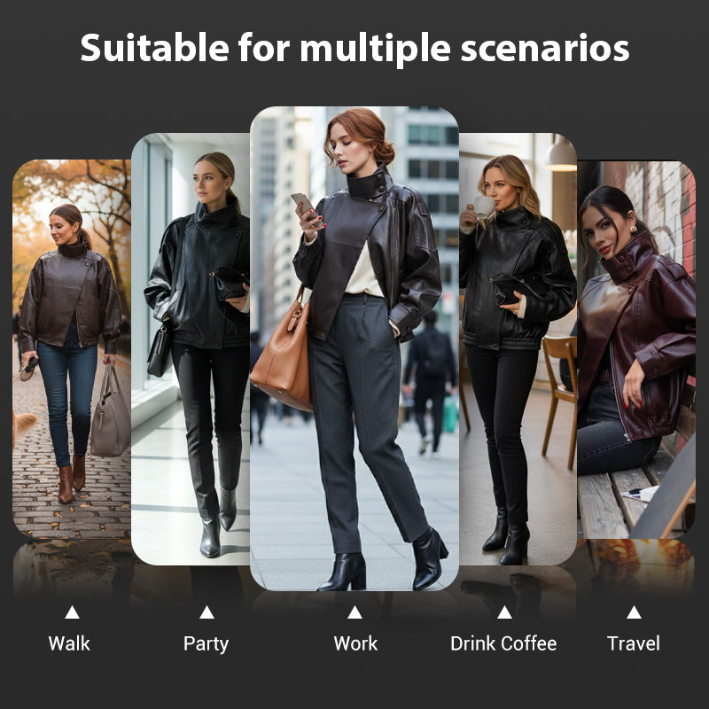 FUNCTIONAL WARMTH - Stay cozy without sacrificing style. The faux leather material acts as an effective windbreaker, providing a comfortable layer of warmth for cooler days, making it ideal for transitional spring and autumn weather.