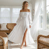 DARING SIDE SLIT - Adds a hint of allure and allows for graceful, unrestricted movement. The high slit not only reveals a glimpse of leg but also enhances the dress's flowy nature, creating a captivating effect as you walk.