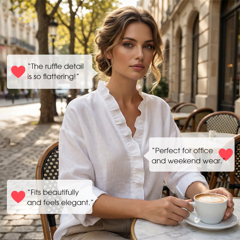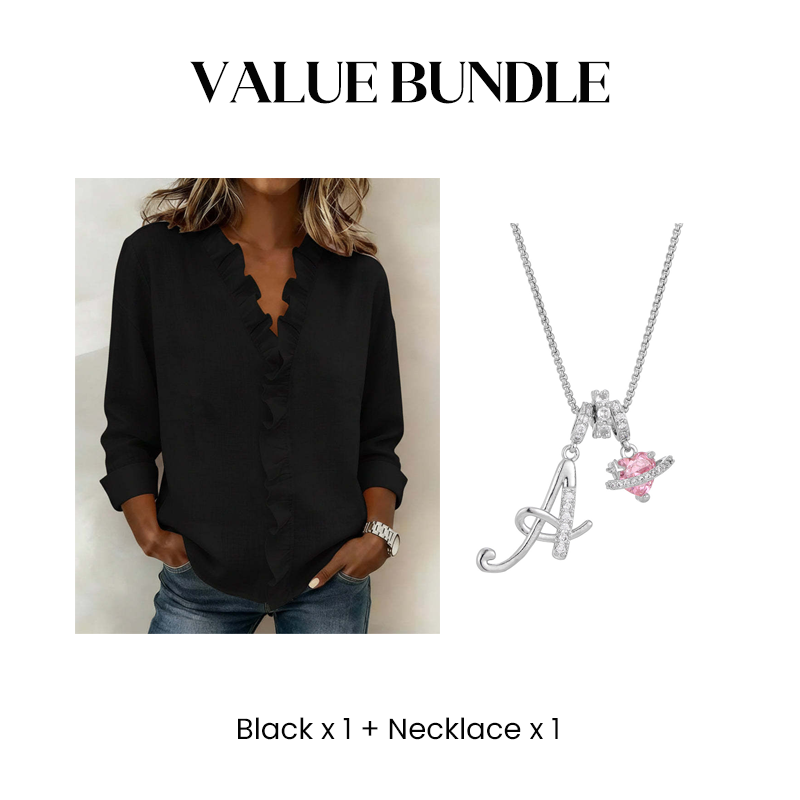 ELEGANT RUFFLE V-NECK - The delicate ruffle trim along the V-neckline adds a touch of romantic charm and sophistication, beautifully framing your collarbone and elevating your everyday look with a distinctly feminine flair.