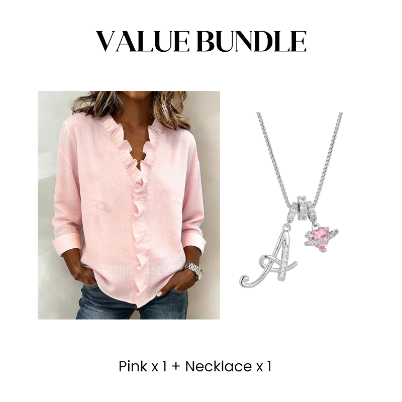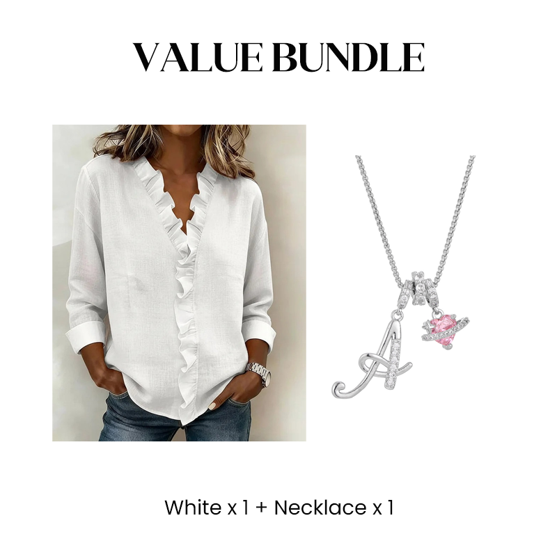 1 x Ruffle V-Neck Long Sleeve Shirt