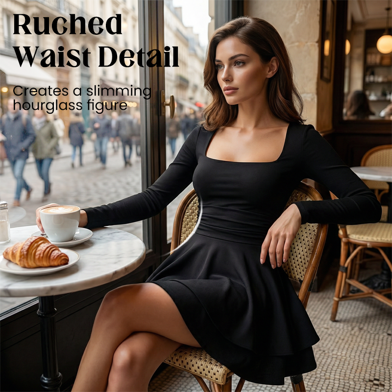 Package Includes: 1 x Women’s Square Neck Long Sleeve Tiered Mini Dress
